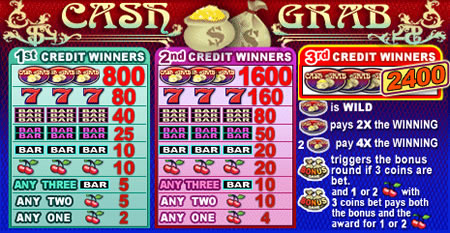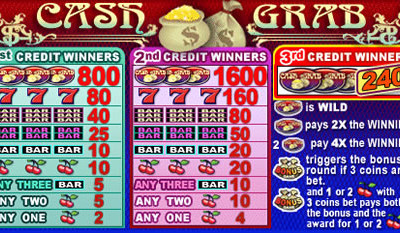There is no dearth of ways to win big in Cash Grab, and the ways range from the standard cherry to single, double and triple bars. The more coins you bet each spin, the higher your amount will be when you win.