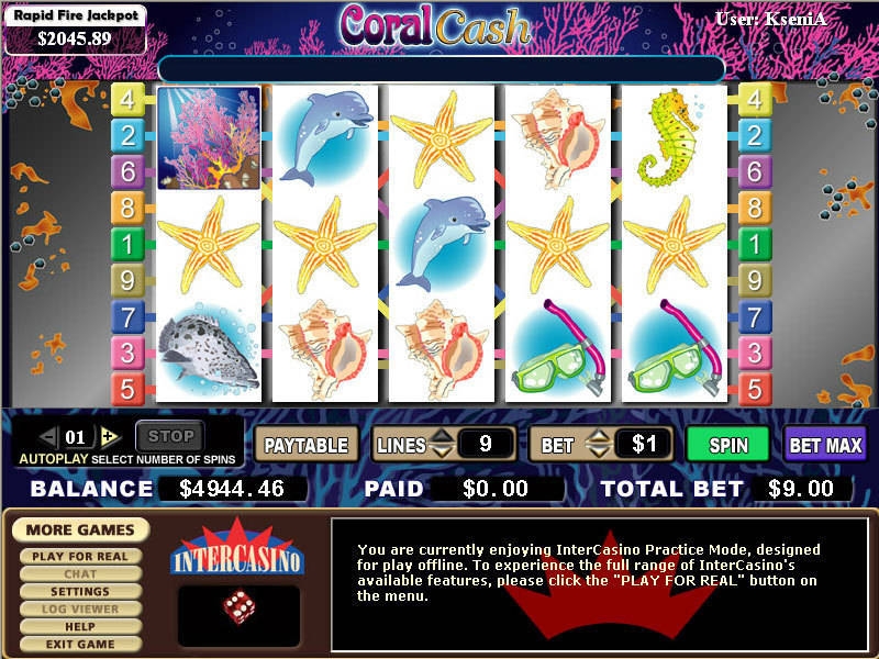 The top payments for Coral Cash slot machine game is up to eight thousand coins, which amounts to $25,000. Each and every coin you place triggers an extra pay line where you are able to bet as many coins as possible and you also get a chance to win the huge jackpot of $8,000.