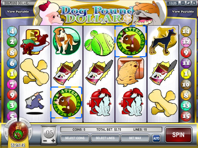 Popular game developer Rival has introduced a compelling Vegas-style slot machine for dog lovers! Dog Pound Slots boasts fifteen pay lines and five reels decorated with adorable, colorful icons such as Doggy Bones, Dog Food, Chihuahuas, Poodles, Doberman dogs, and many more.