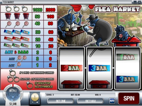 Flea Market, powered by Rival software, is a 1 pay-line traditional slot. It is a classic and simple game that offers you the chance to win great prizes. There are no complicated rules, and the bright graphics and incredible prizes make this game worth your attention.