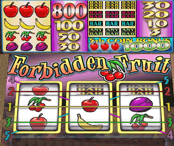 Forbidden Fruit is a traditional slot machine game with a 3 reel 5 line interface, that gives you a top award of 1,000 coins. There is a greater scope to bet with the coin values ranging from 0.01 to 5.00 which gives you an even bigger chance to win. The slot has all the bare essentials to make it appealing. Play your reels right, and you might just find yourself in paradise, quite like the ‘Garden of Eden’ from where the title has in fact been inspired.