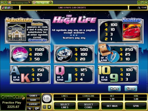 This is a very good way of fantasizing about the lifestyles of the wealthy and high flying members of the communities we live in. The High Life slots is designed with 5 reels and 5 pay lines in which a number of glamorous images of high life are depicted.
