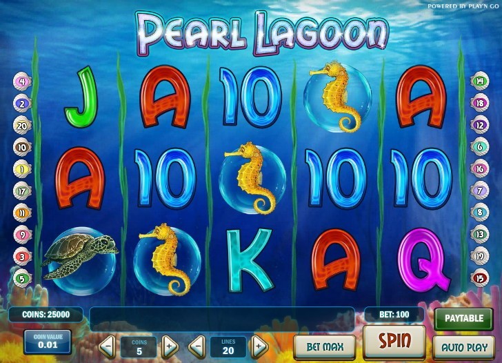 Lucky Lagoon is a 5 reel 5 payline slot which means that there are 5 reels to form your winning combinations from, and 5 times more chances to win if you bet on all 5 paylines. The coin denominations range from $0.01 to $10 with a maximum wager of 5 coins. It does not have a progressive jackpot, still the maximum payout is an incredible 10,000 coins.