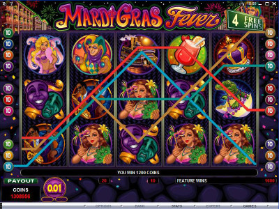 Mardi Gras Fever is a five reel and a twenty pay line video slot machine game which includes free rolls, extra bonus games, and a vast possible top prize of two hundred thousand coins which is equal to $0.1M.