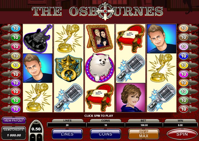 The Osbournes Slots is another of the Microgaming software supported slots games with 5 reels and 20 paylines. In addition, the slots also feature a multiplier that would give the player an opportunity to win as much as 15,000. The game plays with a minimum of $0.01 and accepts $0.50 as the highest coin.